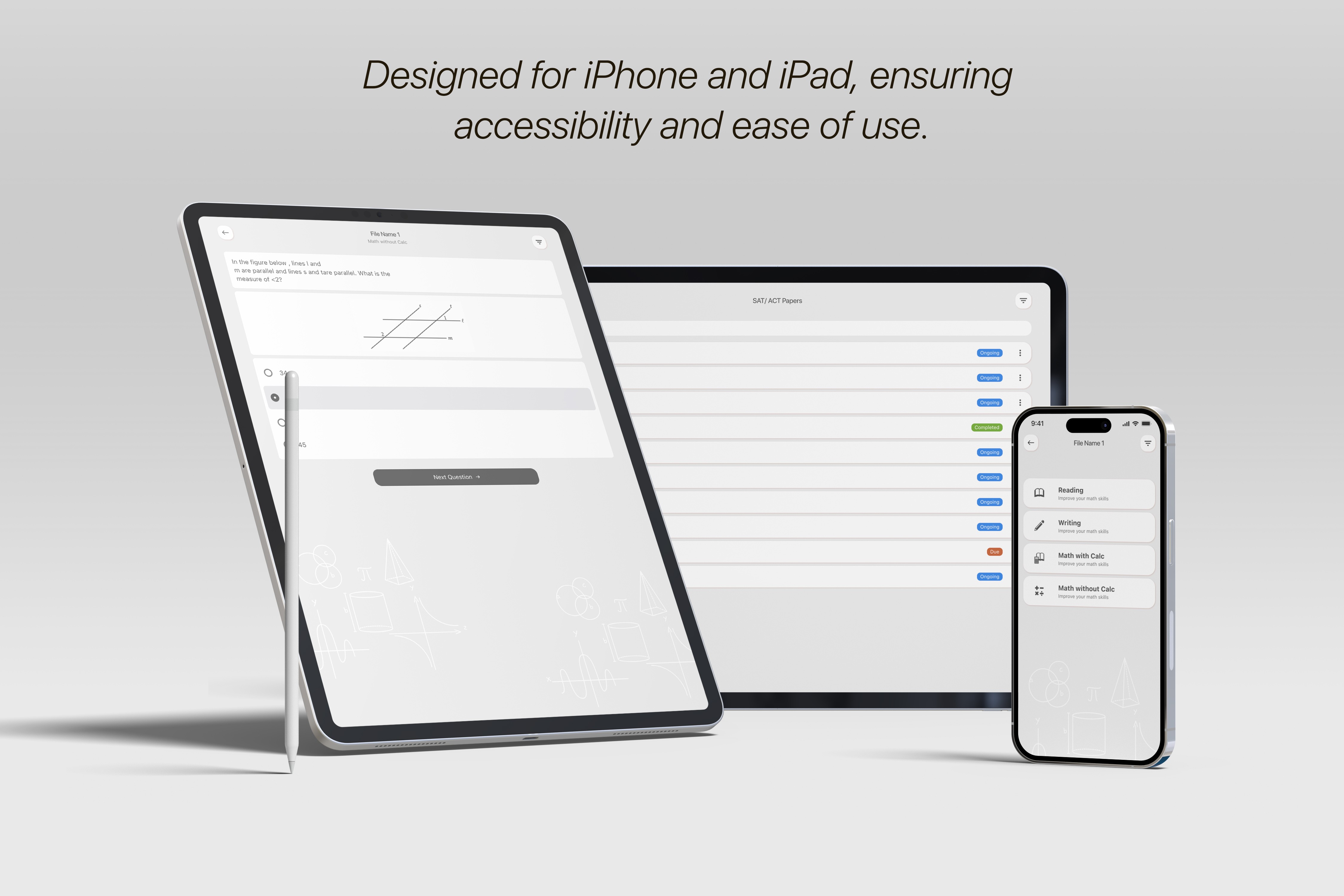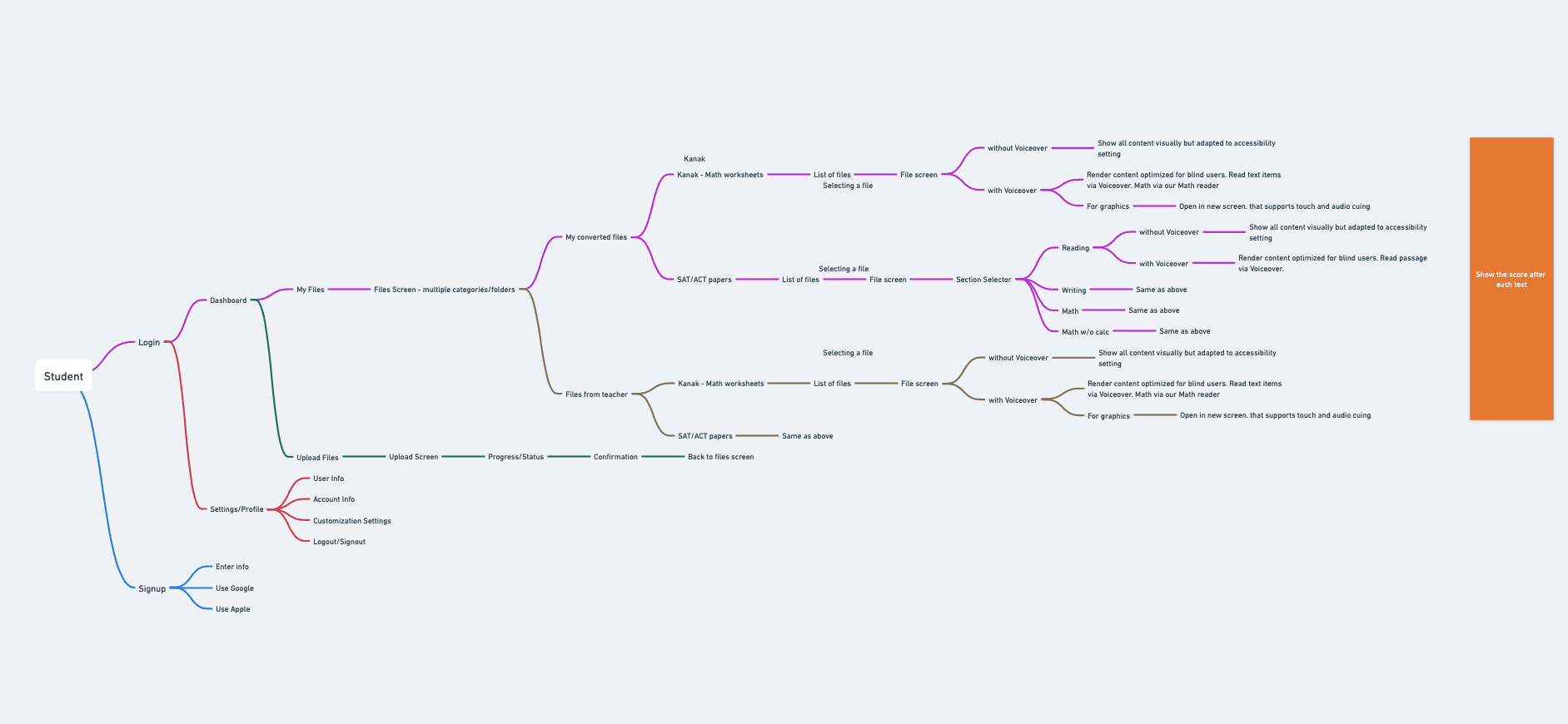 To design a fully accessible, iOS-native platform that empowers visually impaired students to independently learn math, prepare for the SAT, and engage with academic content through voice-first navigation, haptic feedback, customizable fonts, and landscape-optimized interactions.