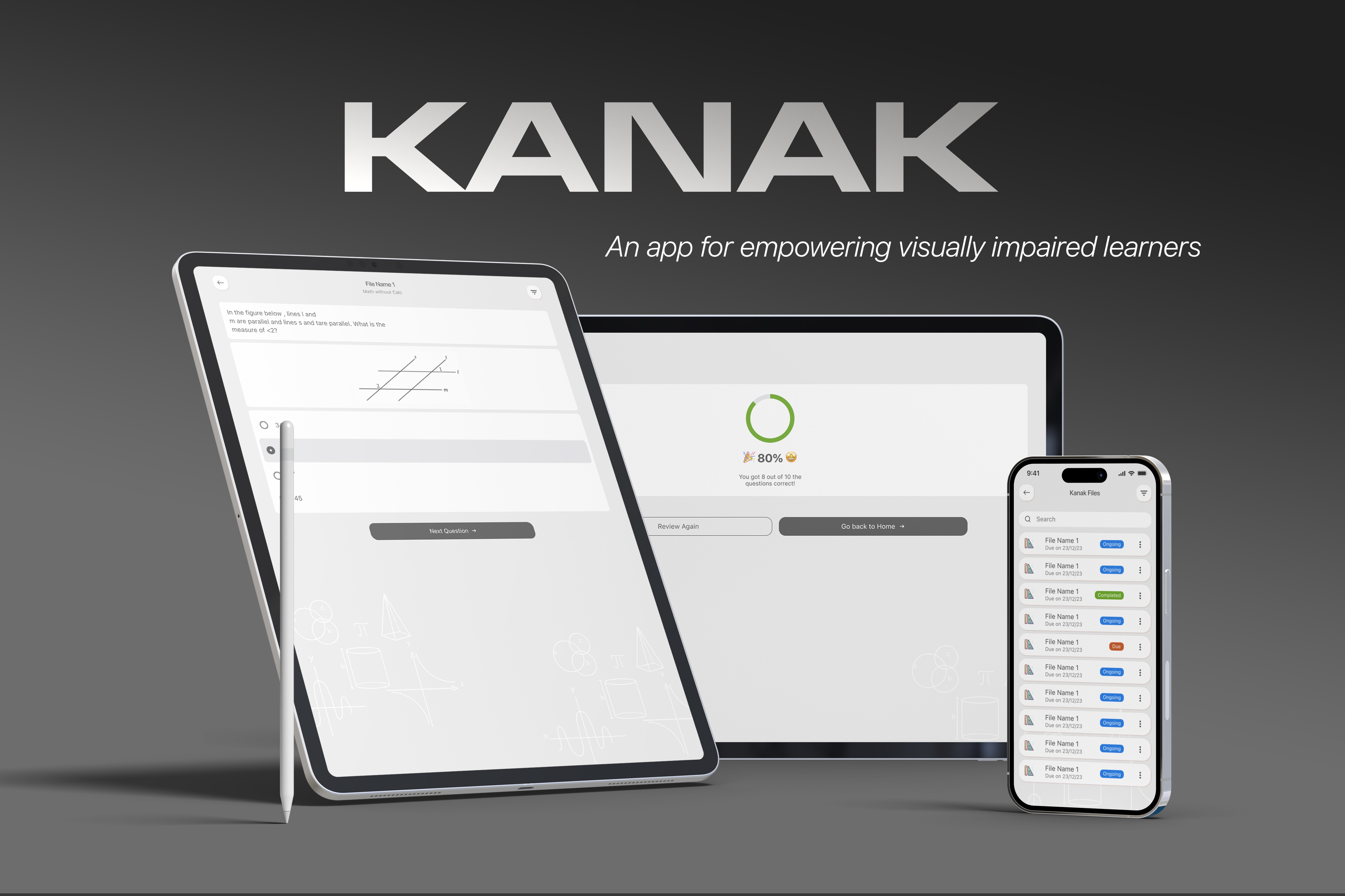Kanak is a mobile-first iOS platform designed to empower visually impaired students by providing accessible tools to build math skills and prepare for standardized tests like the SAT. Available for both iPhone and iPad, Kanak incorporates audio-first interaction, haptic feedback, customizable fonts, and landscape support for math tasks like drawing and graphing. The app also includes an organized file system, VoiceOver optimization, and support for materials shared by teachers, creating a truly independent and inclusive learning experience.