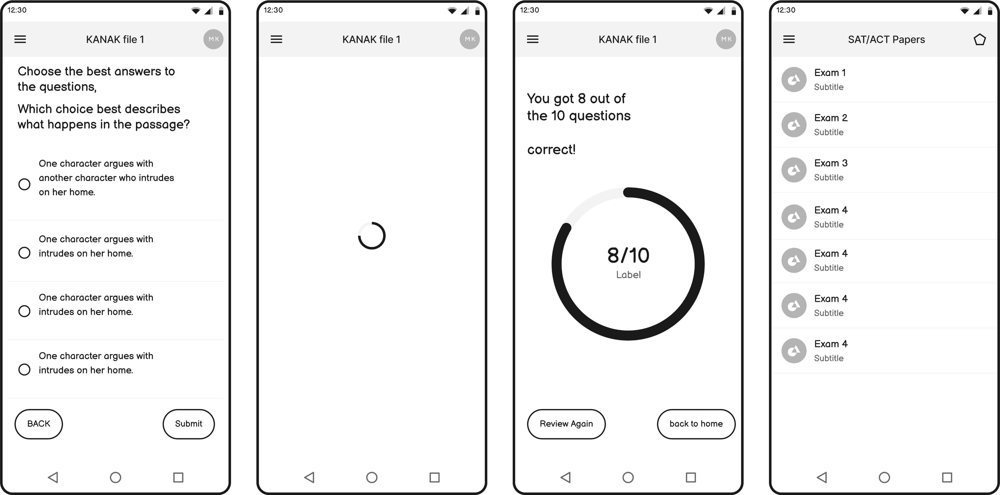 View and complete SAT tests with only audio and vibration cues