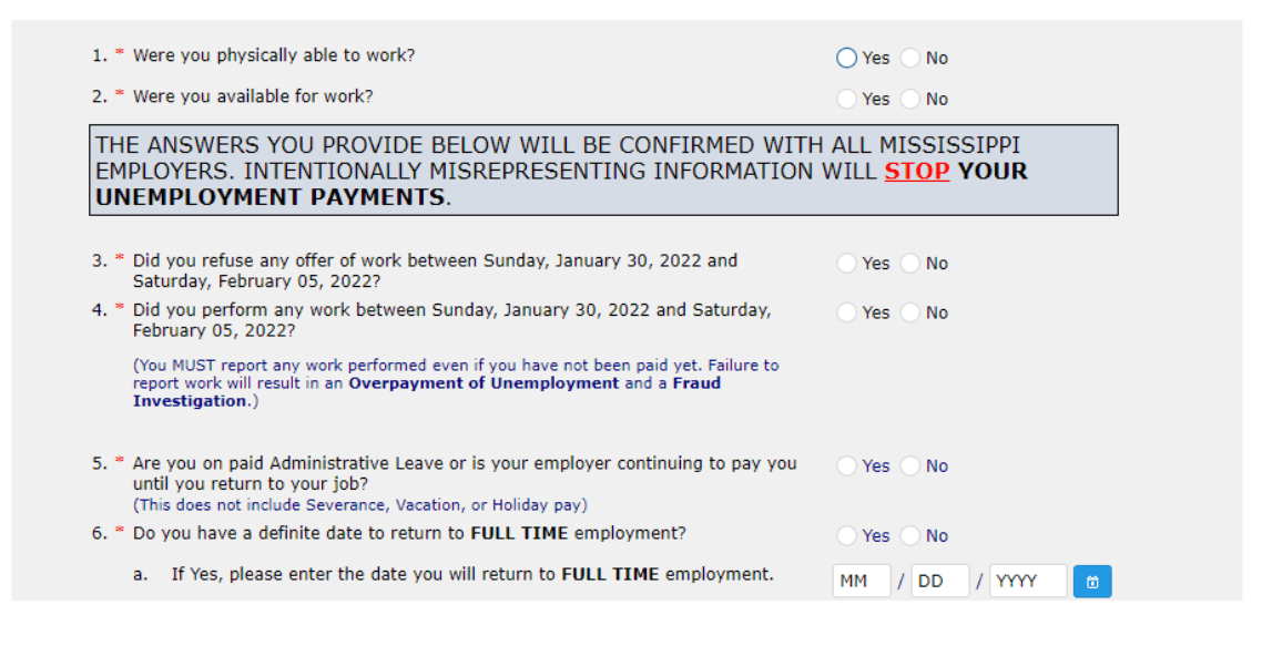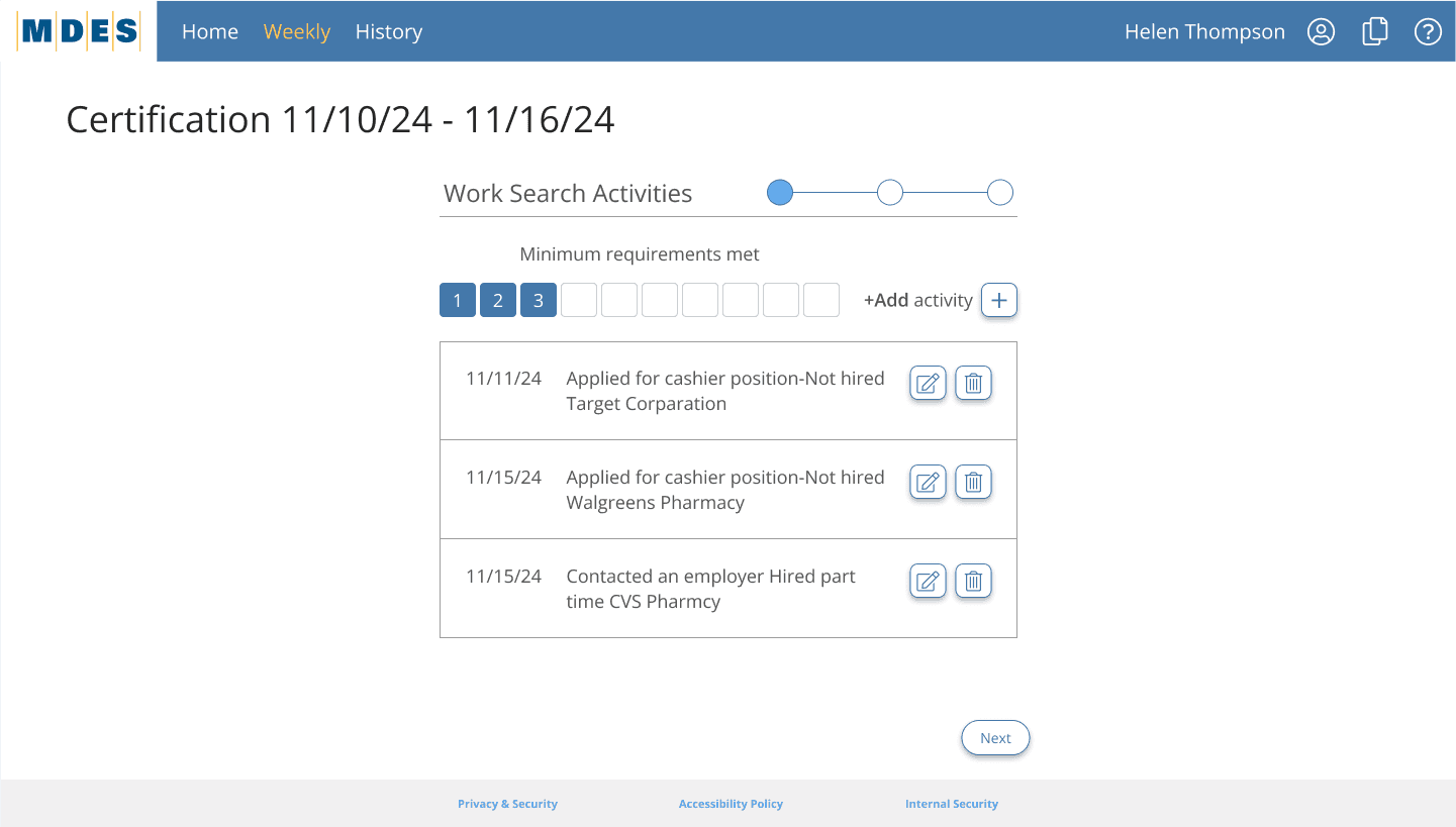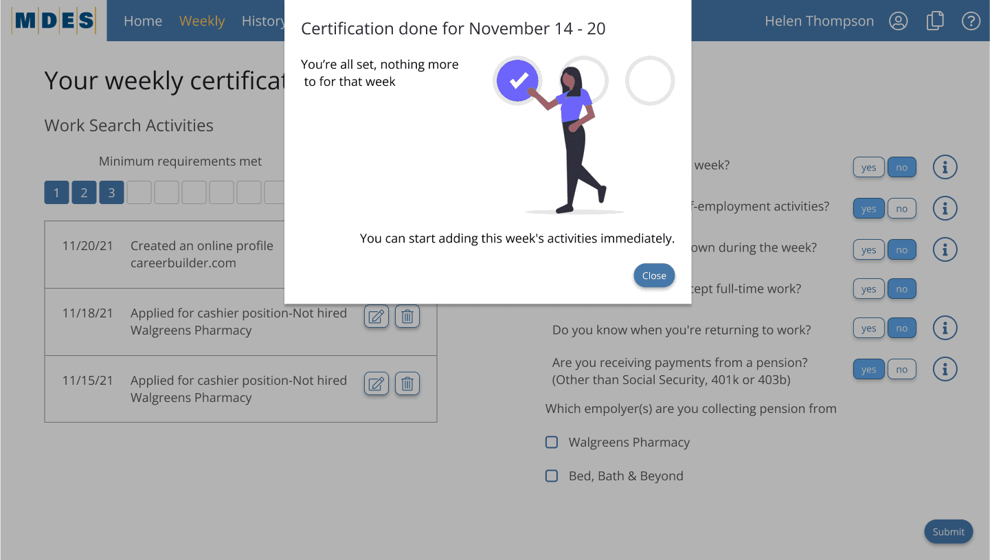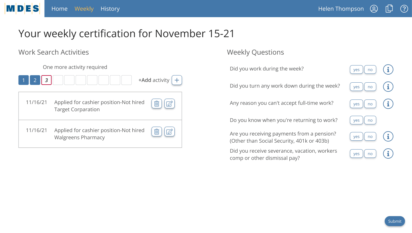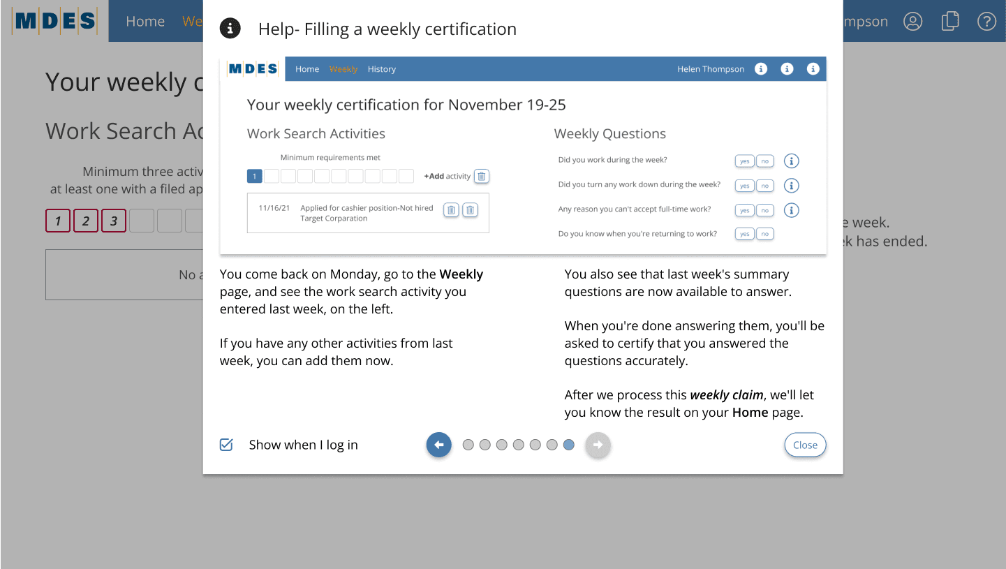 One-page weekly certification flow